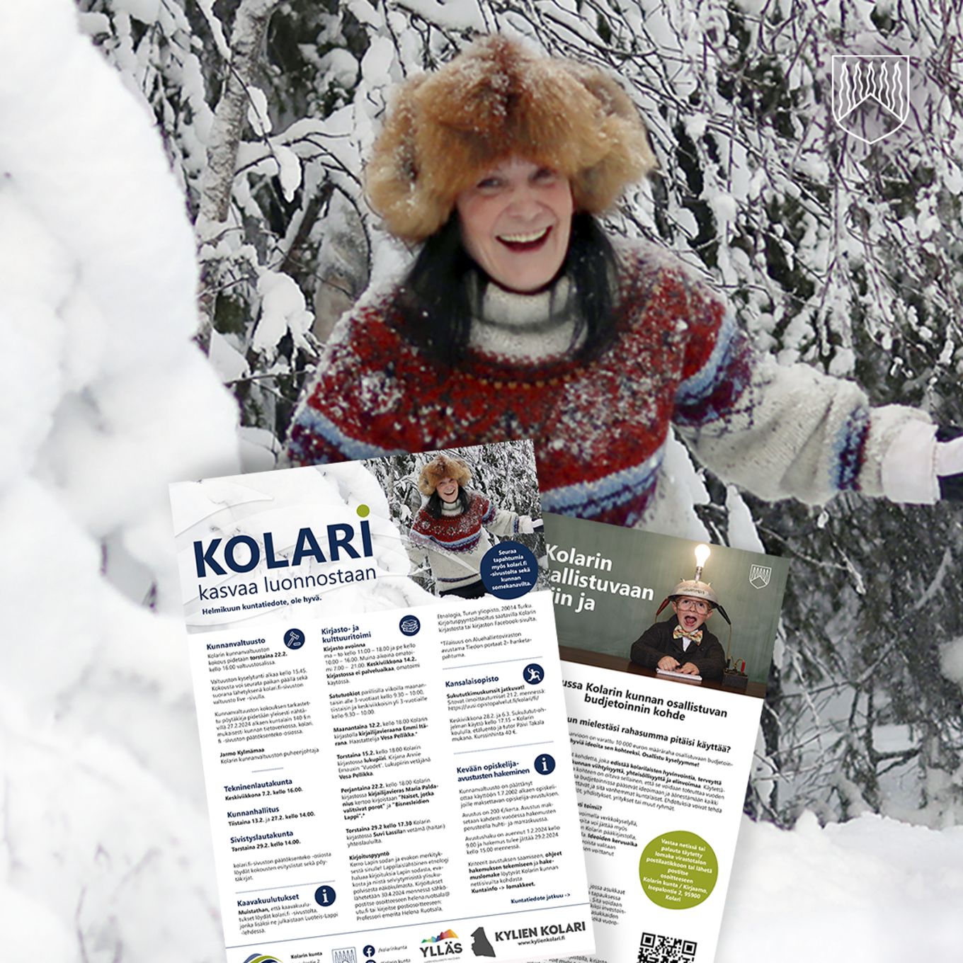 Kolarin kunnan kuntatiedote jaetaan jokaiseen vakituisesti asuttuun kotitalouteen, jossa ei ole mainoskieltoa Kolarin kunnan alueella kuukauden ensimmäisenä keskiviikkona (7.2.2024). Kuntatiedote julkaistaan myös Facebookissa, Instagramissa sekä kolari.fi -sivustolla uutisissa. Kuntatiedotteen voi napata myös mukaansa virastotalolta, kirjastosta ja kirjastoautosta sekä tulostaa itse alla oelvan linkin kautta.