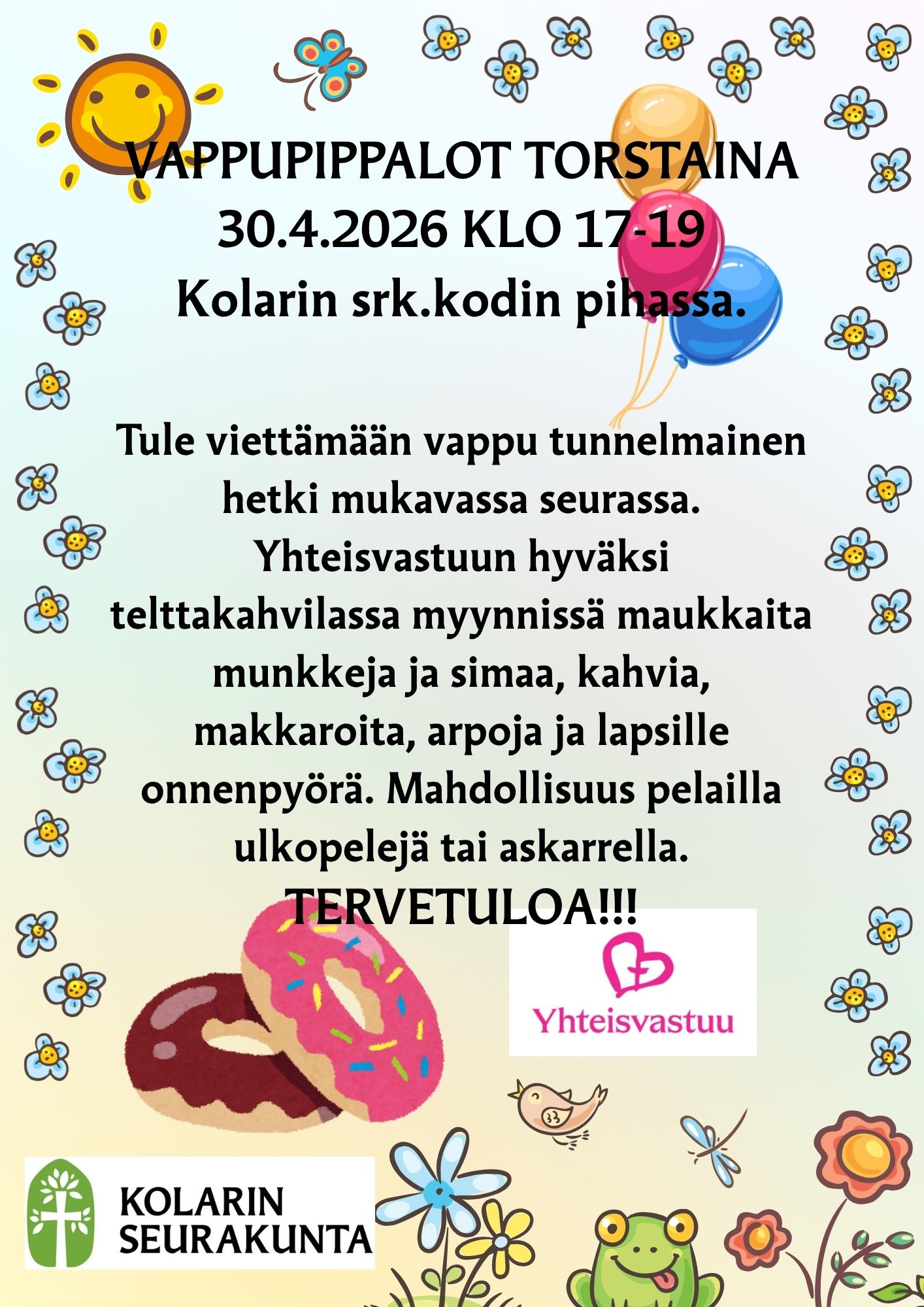 Vapputapahtuma Kolarin seurakuntakodin pihalla Yhteisvastuun hyväksi.