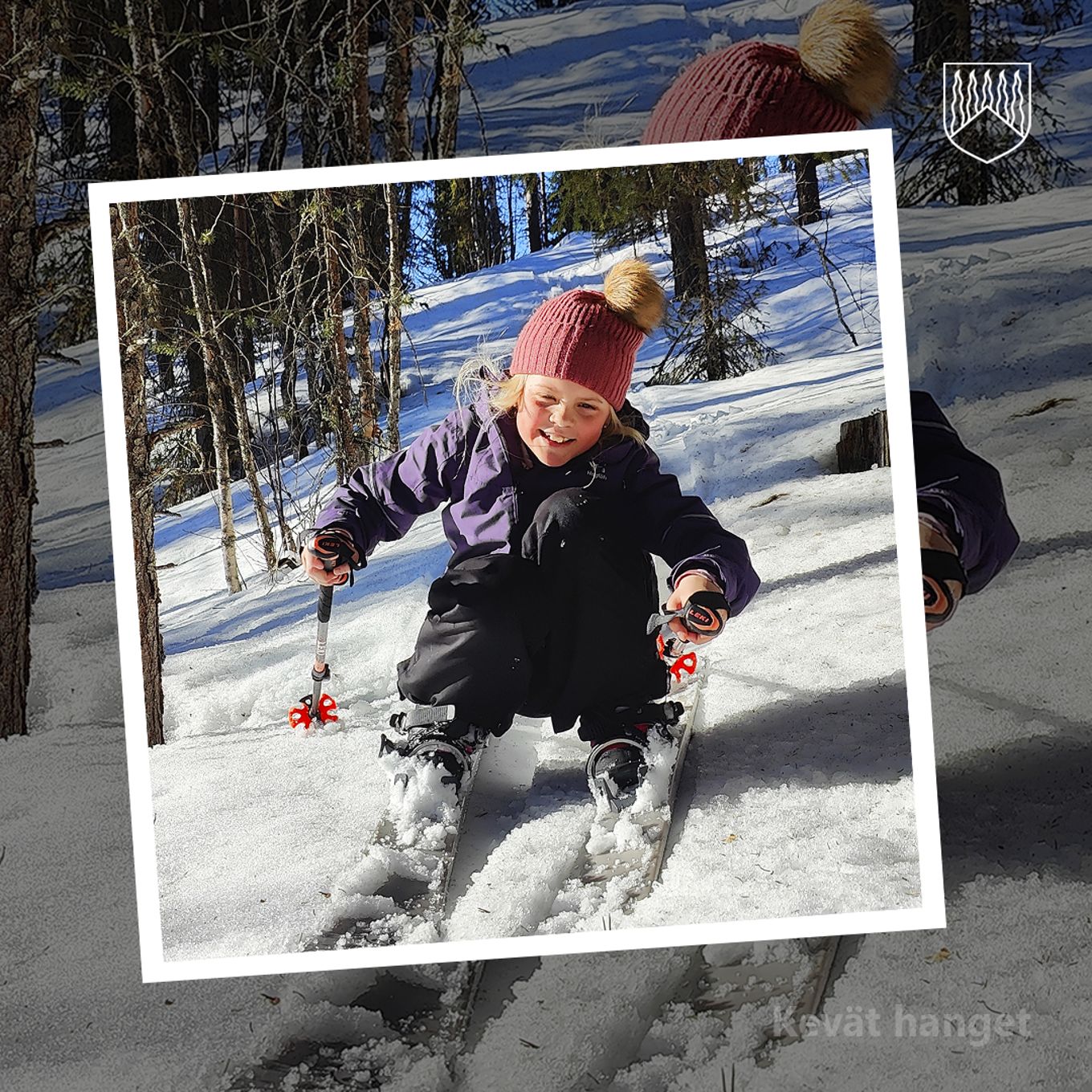 Kevät hanget -sarjan voittajakuvaksi valikoitui valokuva iloisesta lapsesta kevät auringossa liukulumikenkien kanssa metsässä. Kuvan on ottanut Janita Koskela.