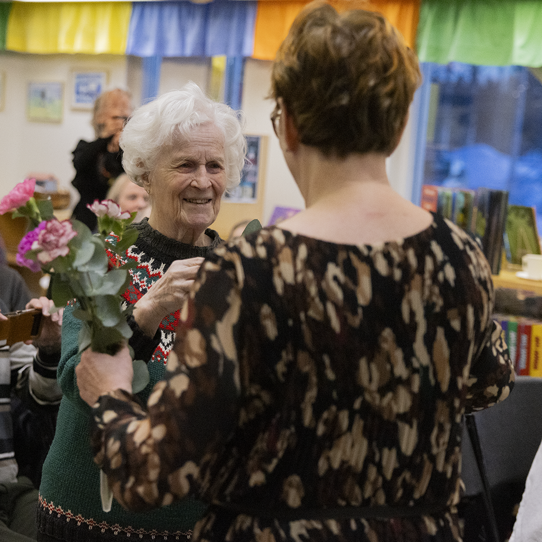 Illan viimeisen varsinaiseen juhlaohjelmaan kuuluneen laulun jälkeen yleisö jäi kuuntelemaan Tuija Kobergin Kiitos tuesta ‑konserttia. Vaikka konsertti ei ollut osa kirjaston virallista 100‑vuotisjuhlaa, se tarjosi juhlapäivälle upean ja koskettavan päätöksen. Tunnelmassa oli jotakin sekä suurta että arkisen läheistä, aivan kuten kolarilaisessa kirjastossa on aina ollut.