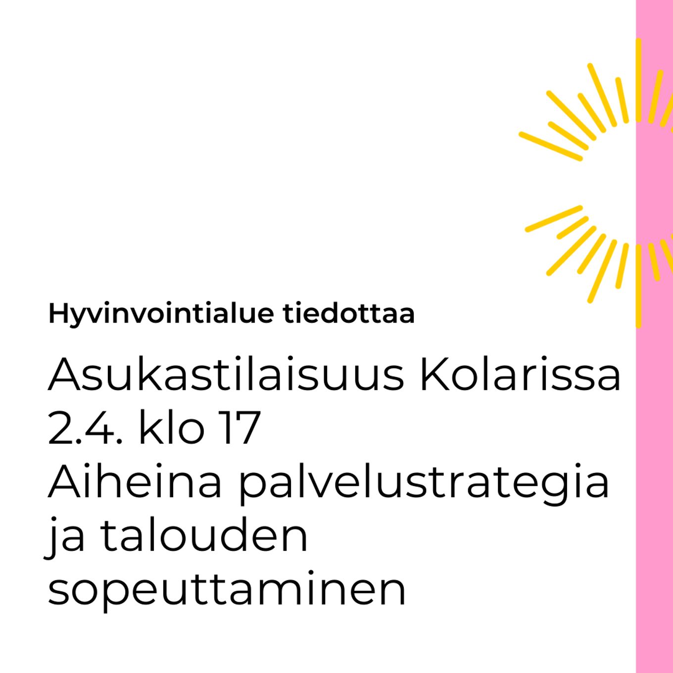 Tilaisuuden järjestävät yhteistyössä Lapin hyvinvointialue ja Kolarin kunta.